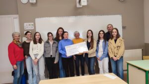 À cette occasion, les élèves ont procédé à la remise d’un chèque correspondant aux fonds récoltés lors du repas “Bol de pâtes” organisé l’an dernier. Ce don de 575€ contribuera à soutenir les initiatives locales du Secours Catholique en faveur des personnes en difficulté.